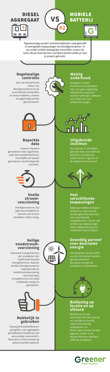 Vond je deze blogpost interessant, maar zou je willen dat hij langer was? Lees dan onze eerste blog post over dit onderwerp, die vijf cruciale verschillen tussen dieselaggregaten en mobiele batterijen introduceert waarvan je op de hoogte moet zijn.